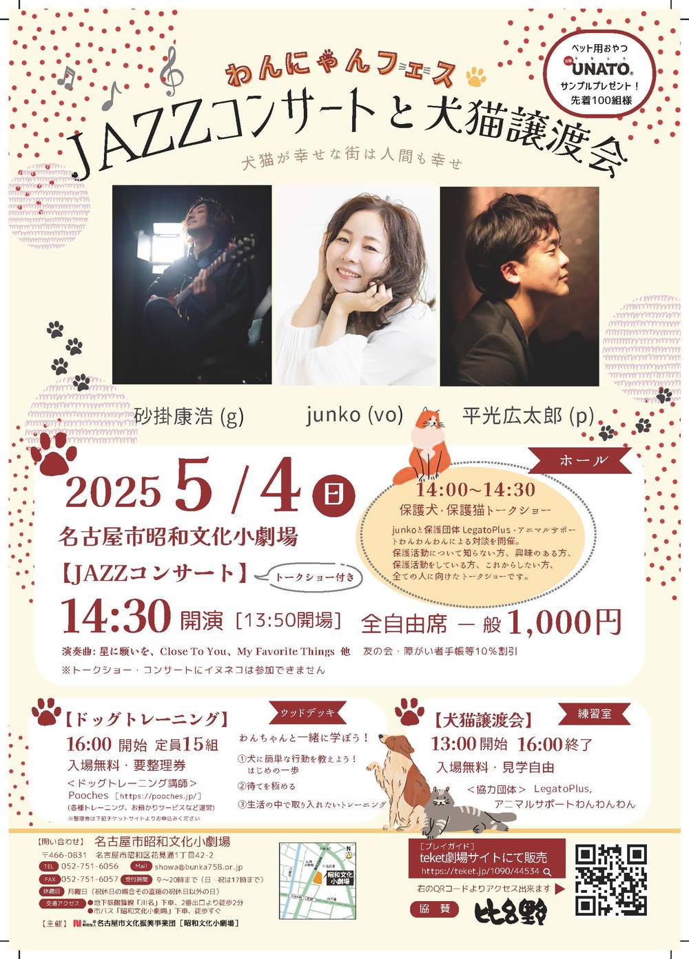昭和文化小劇場全体を使って開催される「わんにゃんフェス」は、犬猫殺処分ゼロ運動の取り組みを支援します。