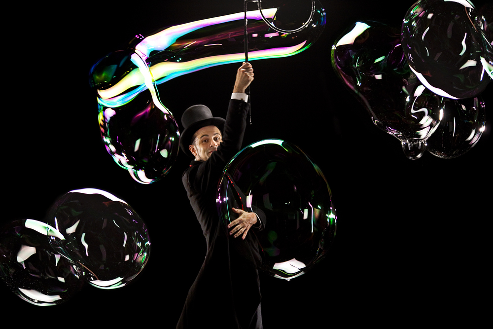 ちょっと変わったオーケストラの指揮者が、皆さんを、壊れやすくてまん丸いシャボン玉の世界へ誘います。かた~くなった頭を丸くして、音楽にあふれたクラウンとマイムの不思議なコンサートをお楽しみください!未就学児さんから楽しめます。