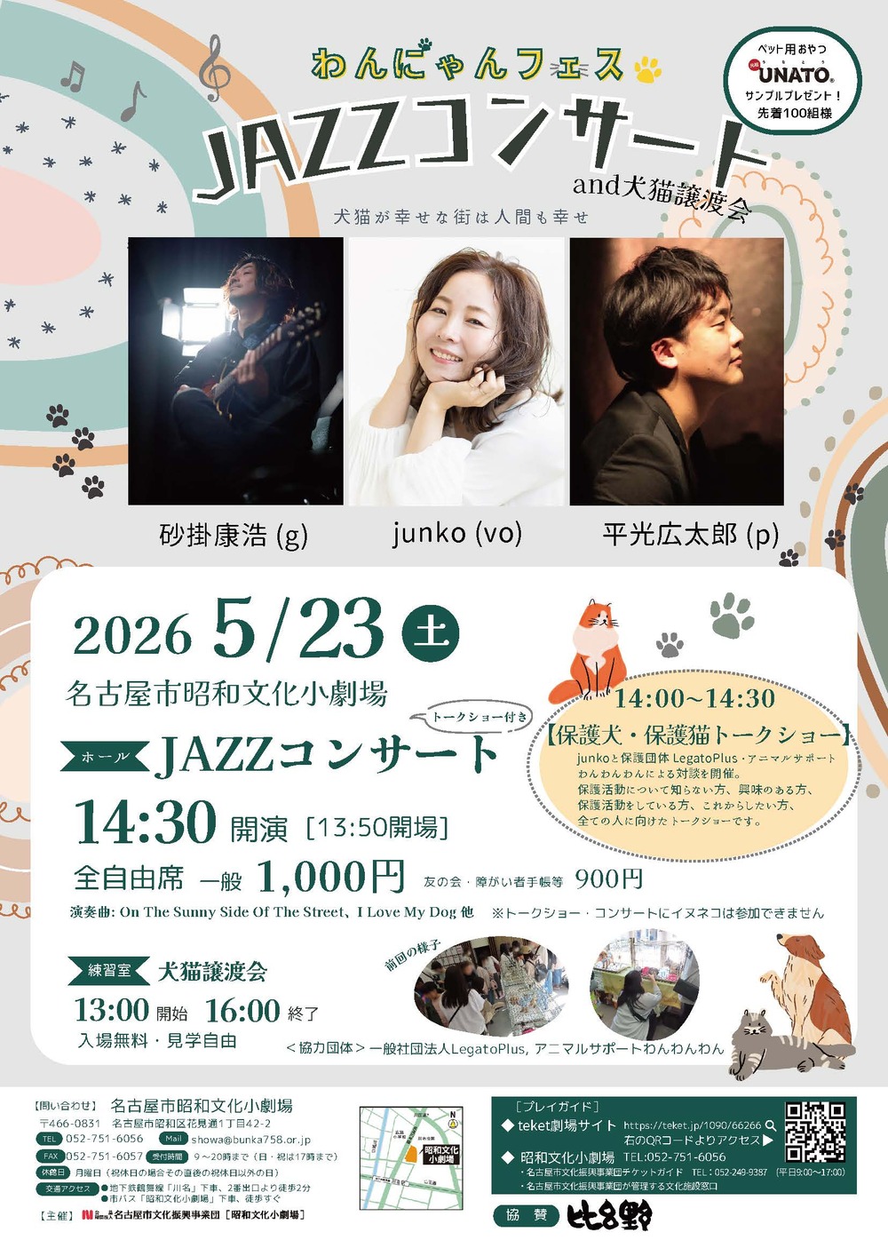 昭和文化小劇場全体を使って開催される「わんにゃんフェス」は、犬猫殺処分ゼロ運動の取り組みを支援します。