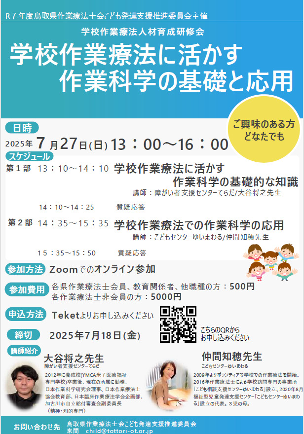 その他のお問い合わせ先:鳥取県作業療法士会こども発達支援推進委員会 来間