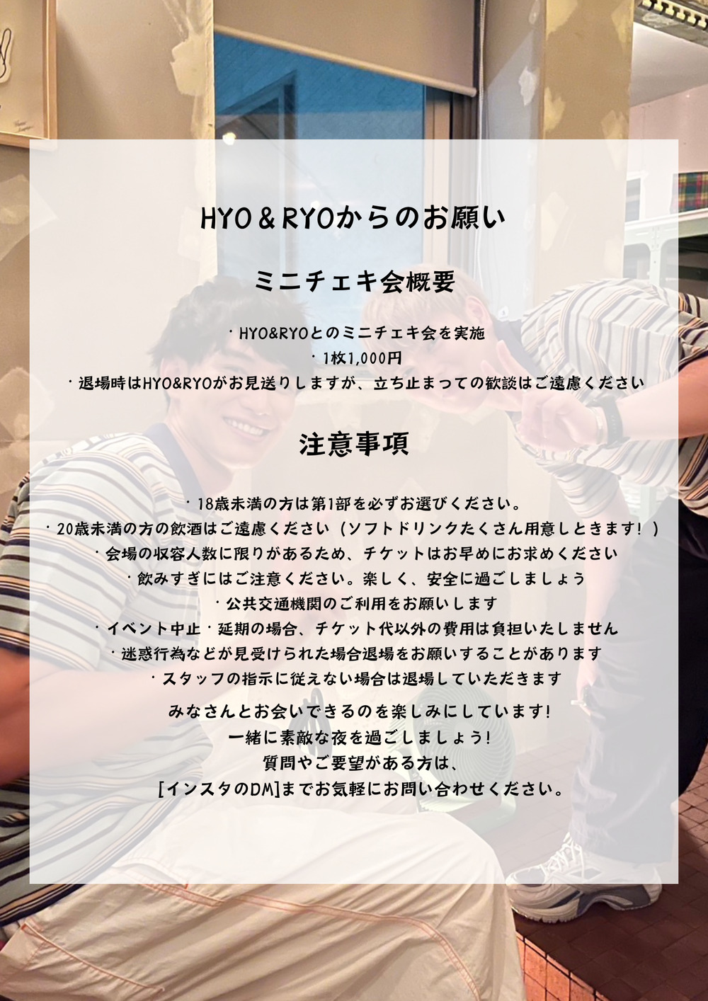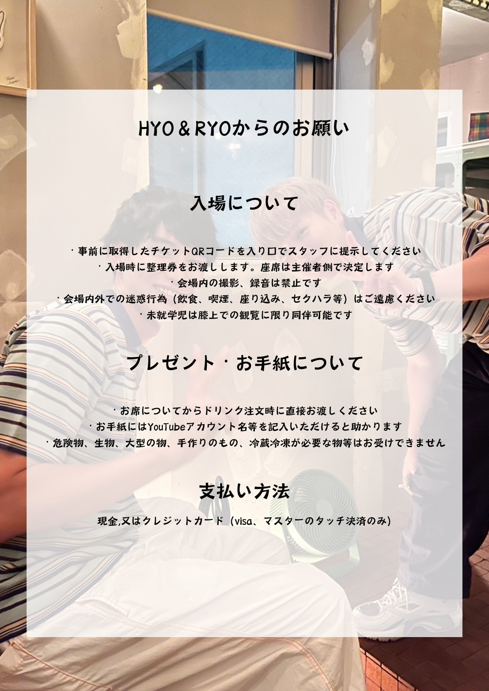 ・退場時はHYO&RYOがお見送りしますが、立ち止まっての歓談はご遠慮ください