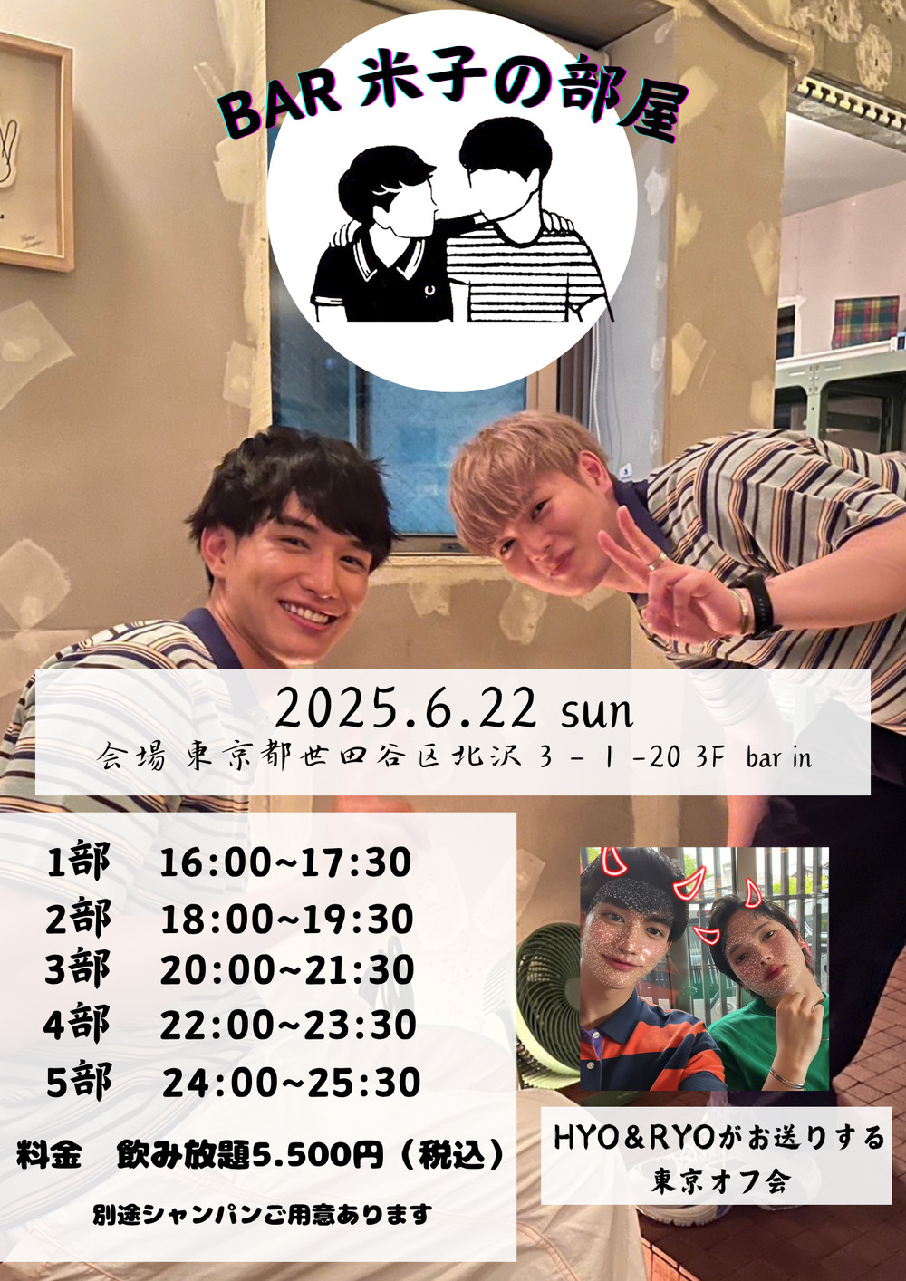 みなさん、こんにちは!HYO&RYOです。再び、みなさんと楽しく交流できる「米子の部屋」を開催することになりました。