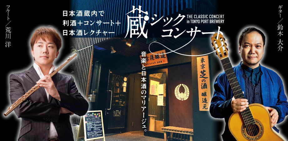 日本を代表するアーティスト演奏のクラシック音楽を聴かせて造った日本酒を、東京23区唯一の酒蔵・東京港醸造の蔵でコンサートを聴いて、さらにお酒のテイスティング、杜氏のお酒レクチャーが受けられる楽しく、美味しいイベントです。(イベント終了時間16時半は前後することがあります)