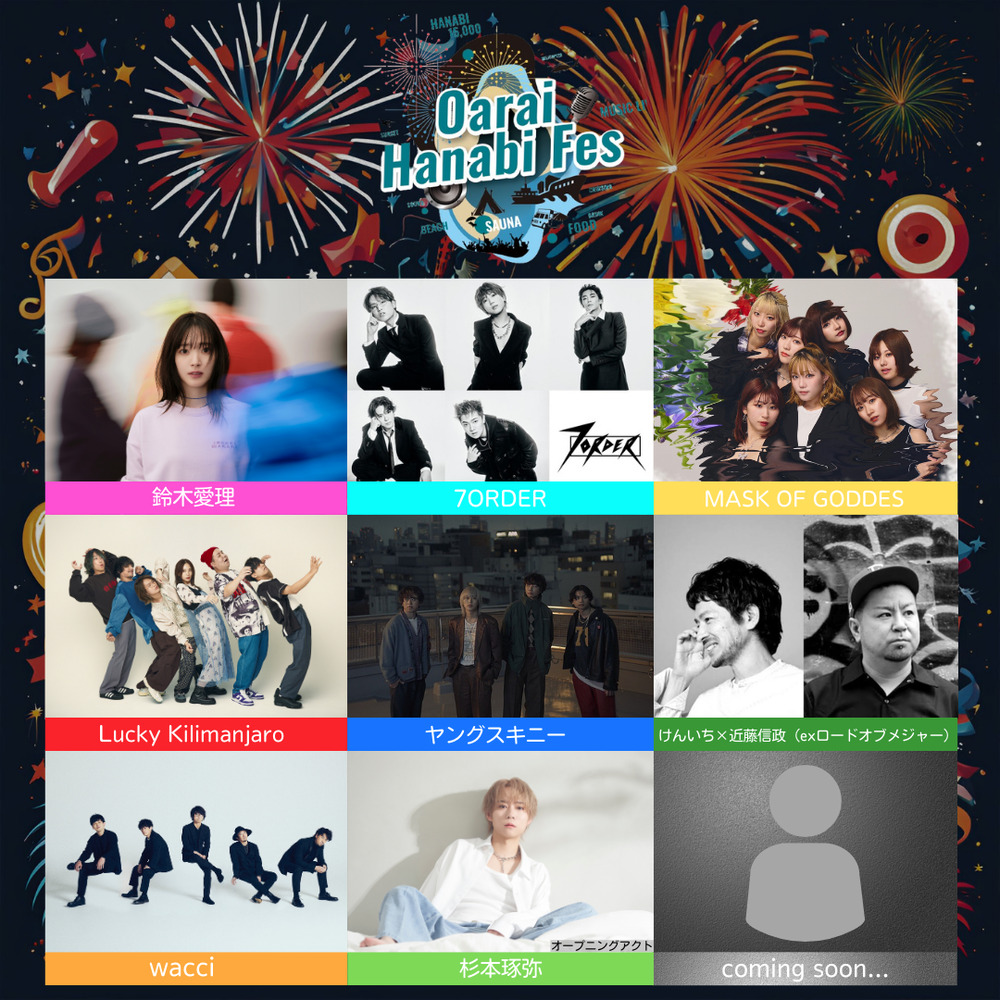 鈴木愛理/Lucky Kilimanjaro/wacci/けんいち×近藤信政(exロードオブメジャー)/ヤングスキニー/7ORDER/MASK OF GODDESS/杉本琢弥
