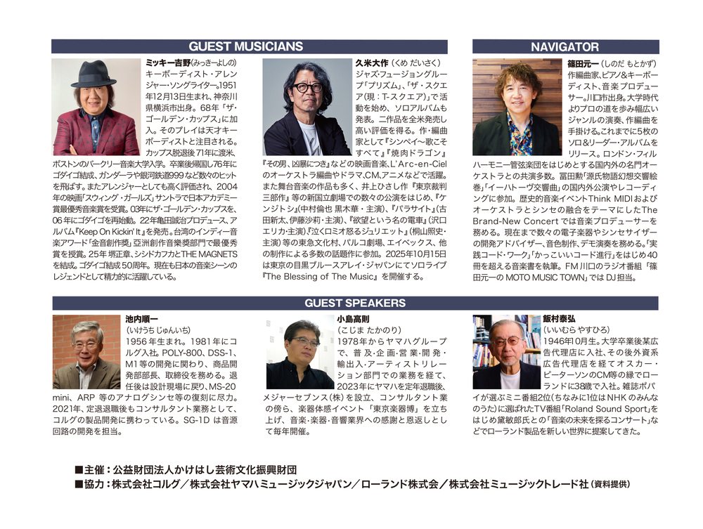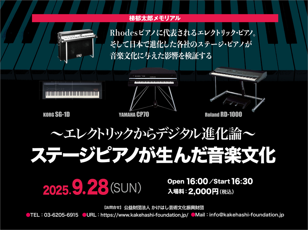 Rhodesピアノに代表されるエレクトリックピアノ、そして日本で進化した各社のステージピアノが音楽文化に与えた影響を検証する。