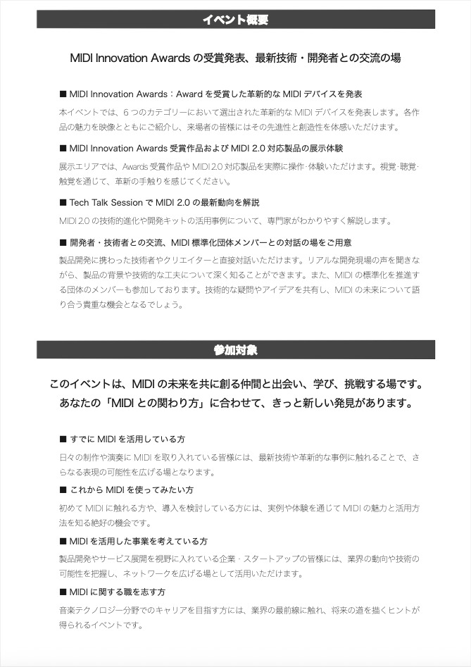 ■ 開発者・技術者との交流、MIDI 標準化団体メンバーとの対話の場を用意