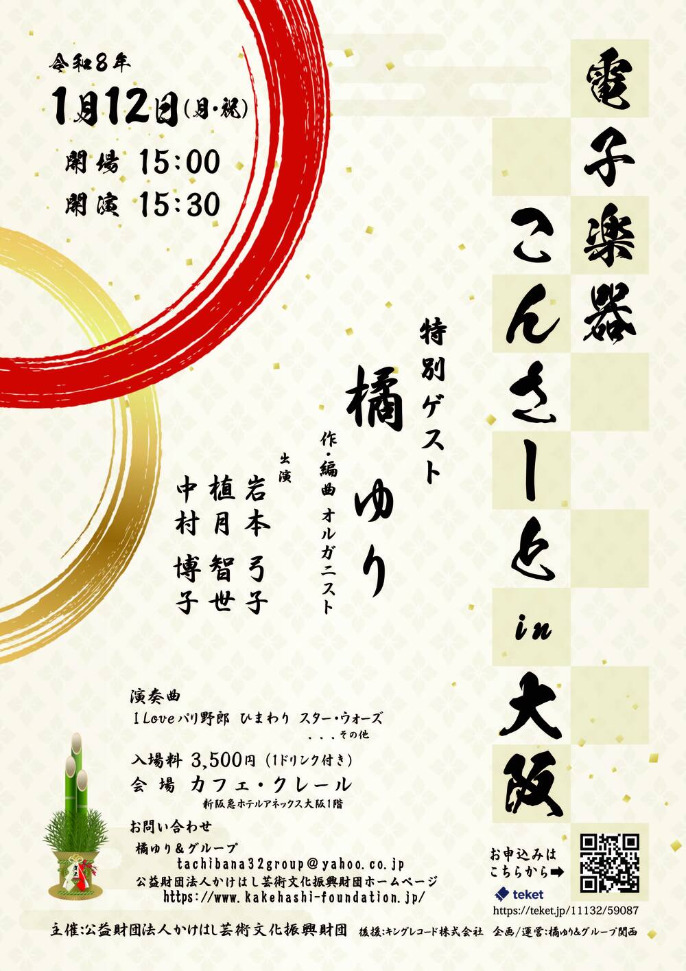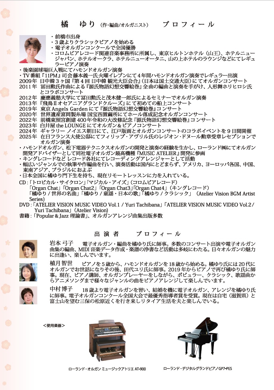 アレンジャー・プレーヤーとして国内外で活躍中の橘ゆり氏をゲストに迎え、関西で活躍する3名のプレーヤーが個性豊かな演奏をお届けいたします。