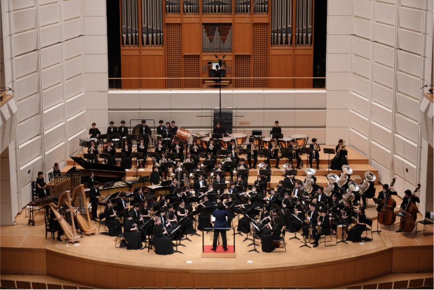 吹奏楽のコンサートの持ち味は、多岐にわたるジャンルを一つのコンサートに取り込んでも決して不自然にならず楽しんで頂ける事だと考えます。まるでデパートの様な感じです。息の長い音楽作りを要求される作品から、今の学生の皆さんにとっては些か古く/ダサく感じるかもしれないポップスにも敢えて挑戦して貰います。振り幅の大きいプログラムを楽しんで頂けたらと願っています。