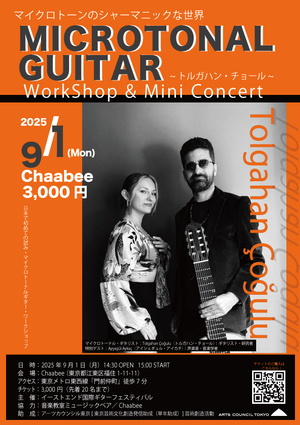 マイクロトーナル・ギター(微分音ギター)の先駆者として国際的に知られるトルガハン・チョールによる「マイクロトーナル・ギターにおける歴史的音律」と「マイクロトーナル・ギターによるトルコ音楽マカームのフラメンコへの応用」など、日本国内では初の試みとなるワークショップを開催