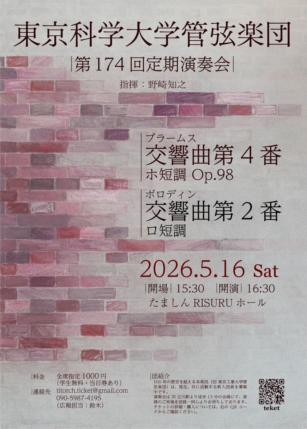 2026年の春、新体制となって初めての定期演奏会では、アレクサンドル・ボロディン作曲『交響曲第2番』、そしてヨハネス・ブラームス作曲『交響曲第4番』の二曲に挑みます🎶