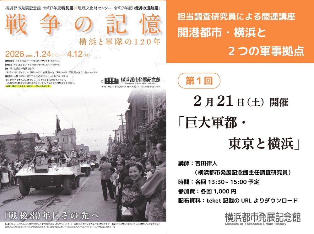 2026年1月24日(土)から横浜都市発展記念館で開催している特別展「戦争の記憶 ―横浜と軍隊の120年―」関連の連続講座。