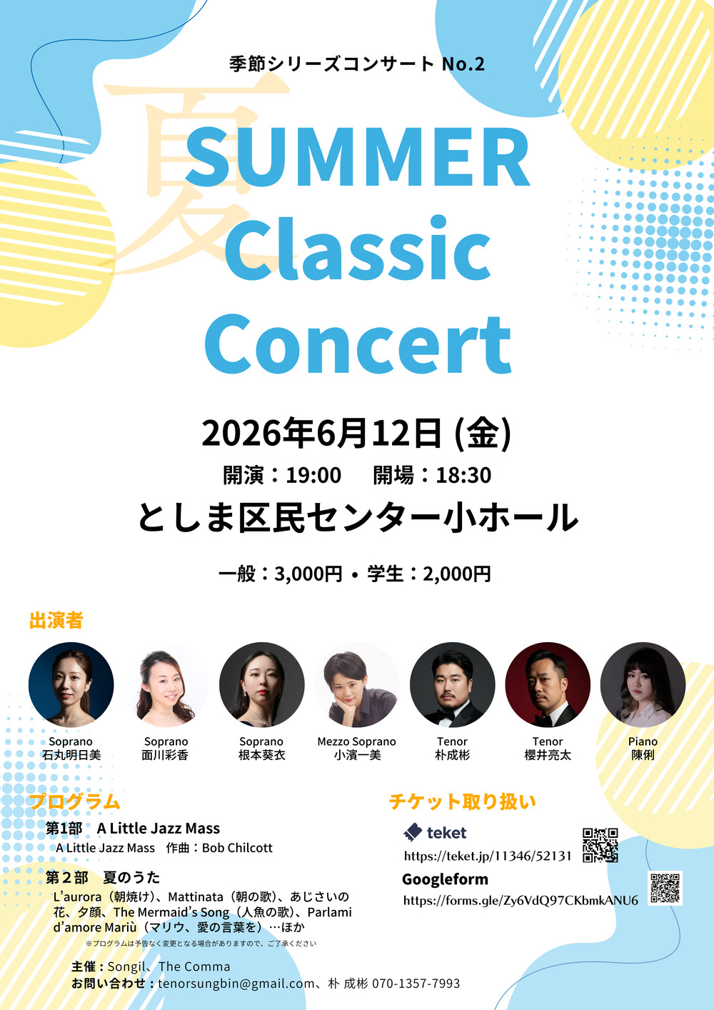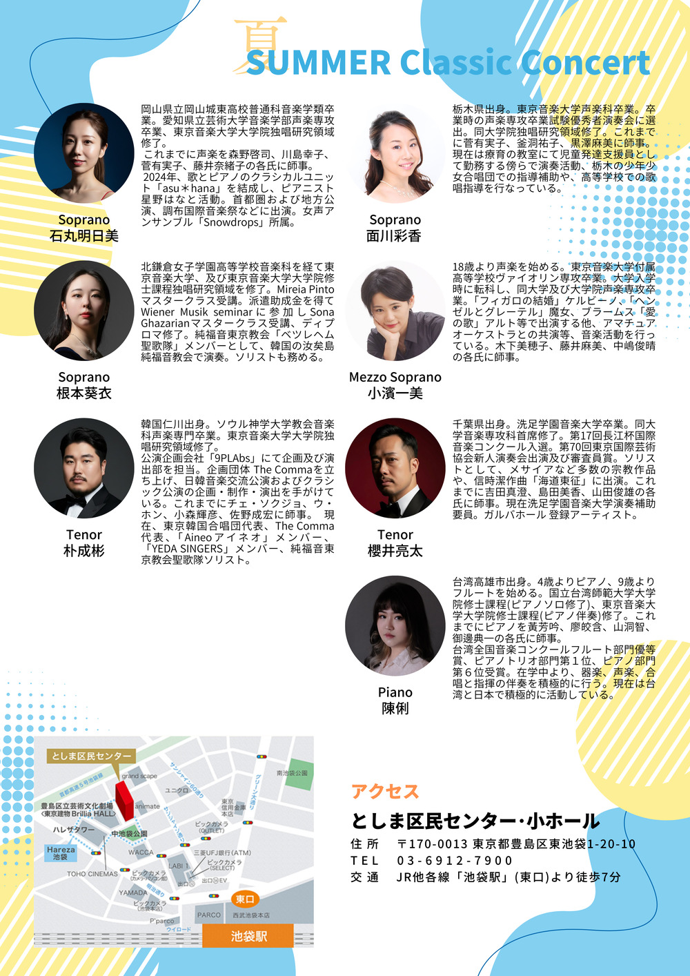 第2部では「夏」をテーマに、独唱・重唱を織り交ぜながら、朝焼け、花、海、恋の情景まで――多彩な夏の表情を音楽で描きます。