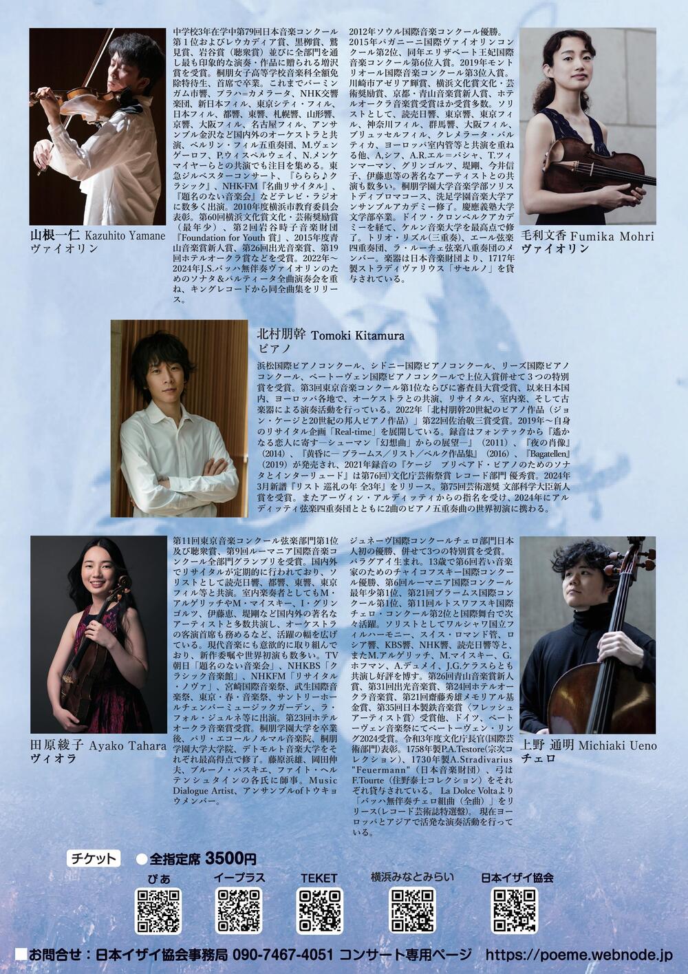 彼らの高度な技術と表現力によりイザイが希求した詩情や抒情の新天地が拓かれることが期待されます。