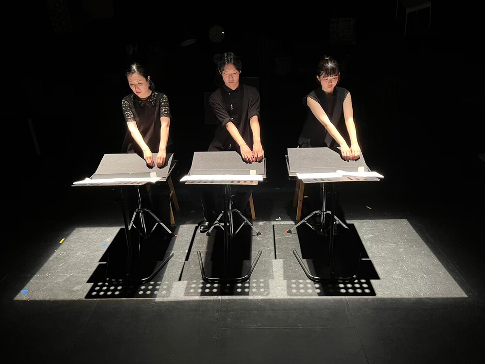 テーブルのみの作品。数十種類の手の形から生まれるテーブルを打つだけの作品。複雑なアンサンブル作品。