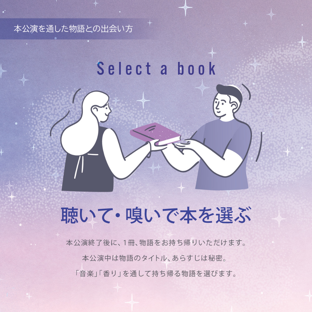 本公演中は物語のタイトル、あらすじは秘密。「音楽」「香り」を通して持ち帰る物語を選びます。