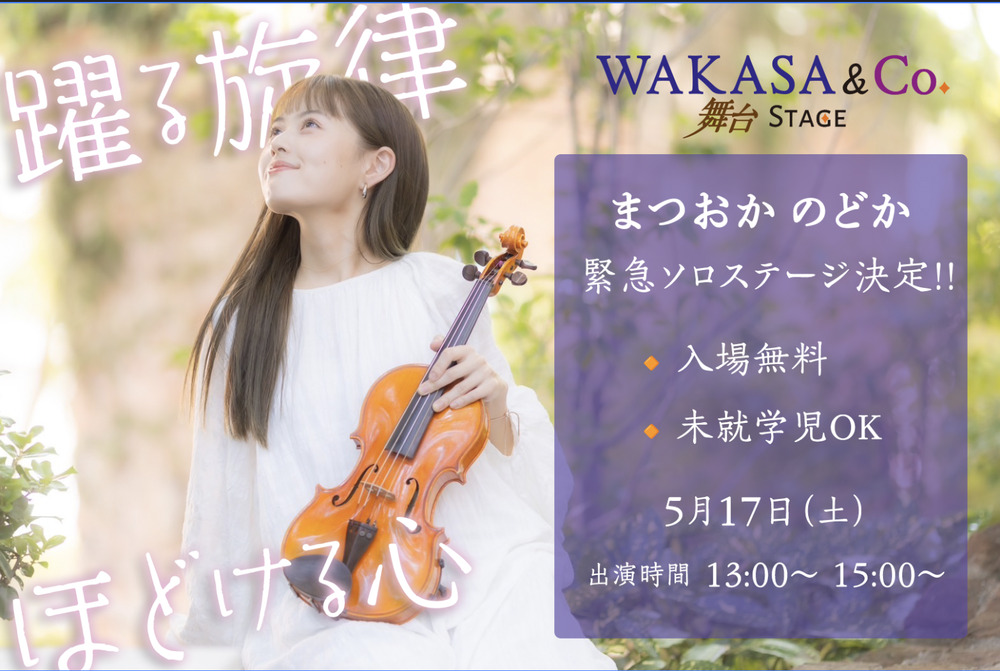 クラシックの確かな技術に、ポップスやジャズの軽やかさを乗せ、ヴァイオリニスト・まつおかのどかが紡ぐのは、聴く人の心をほどくような、あたたかく澄んだ音の景色から、その音色に思わず、心がふわり踊り出す爽快なポップスナンバーまで…
