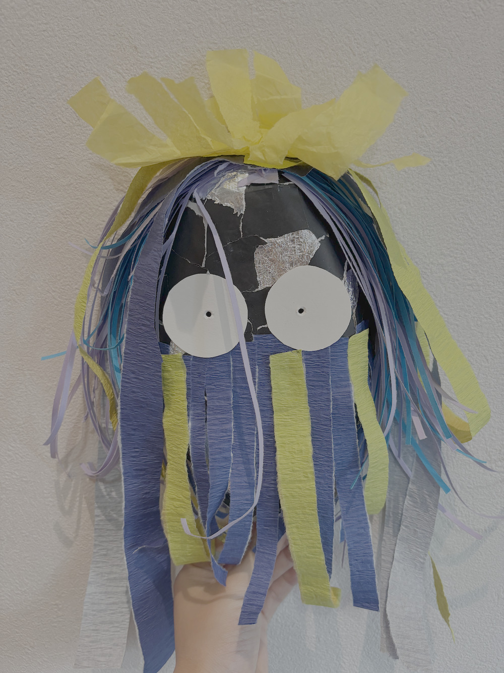 身の回りにある素材を使っておばけのおめんをつくりましょう!
