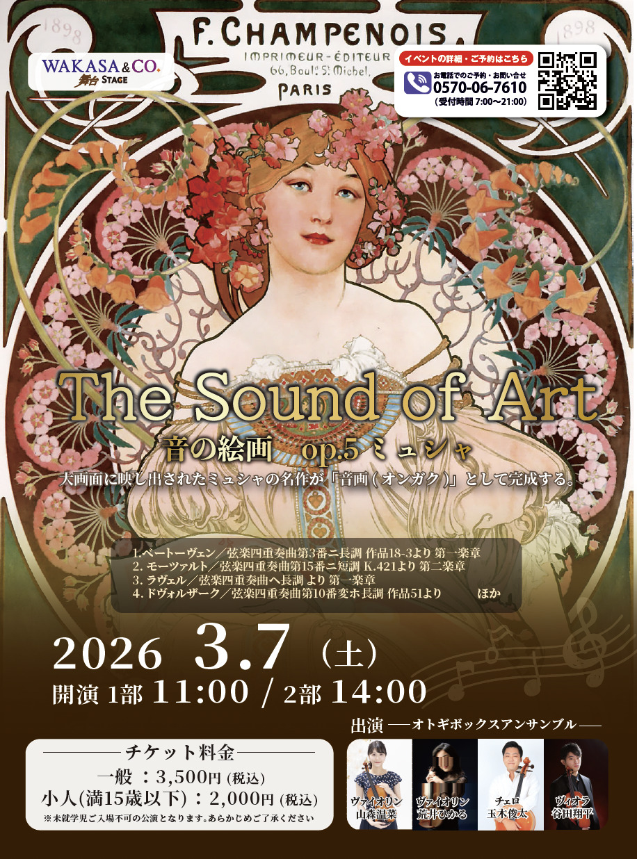弦楽四重奏の壮大な楽曲とミュシャの絵画のコラボをお楽しみください。