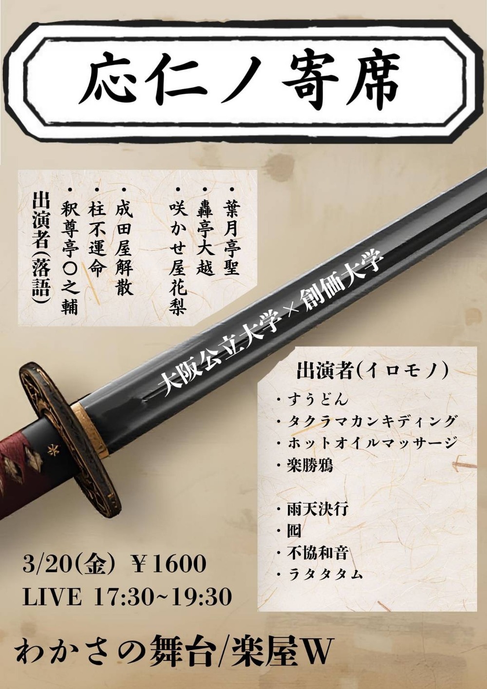 大阪公立大学落語研究会と創価大学落語研究会による合同ライブです!
