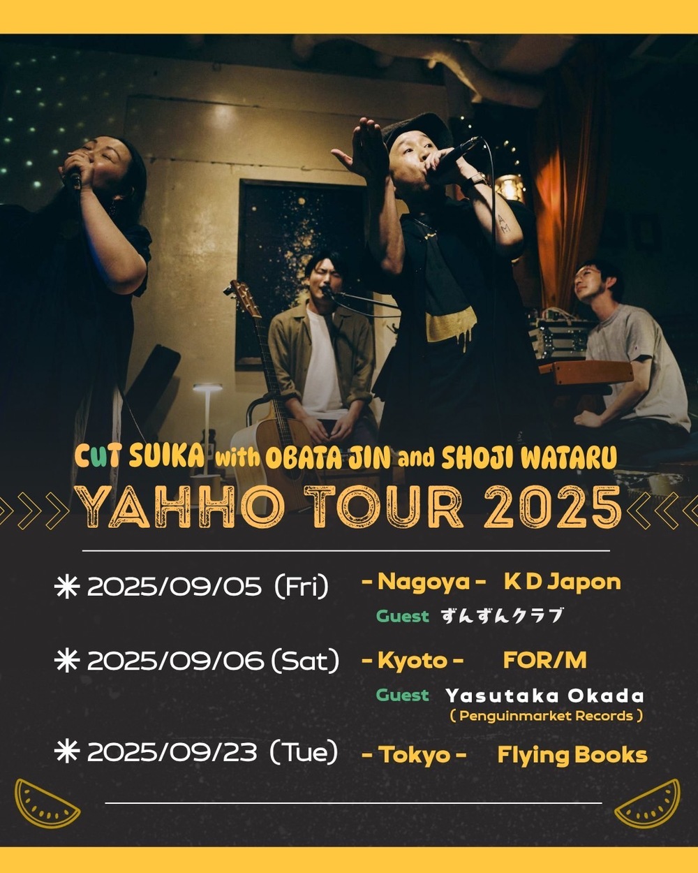 A special band featuring CuT SUIKA with Obata Jin, a singer-songwriter and beat maker from the hip-hop band SUIKA, and Shoji Wataru on piano. 🎵🎵