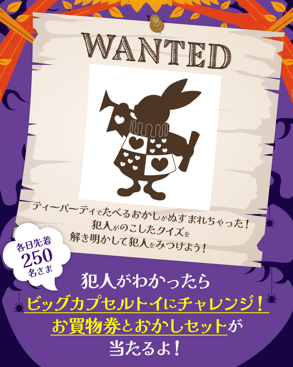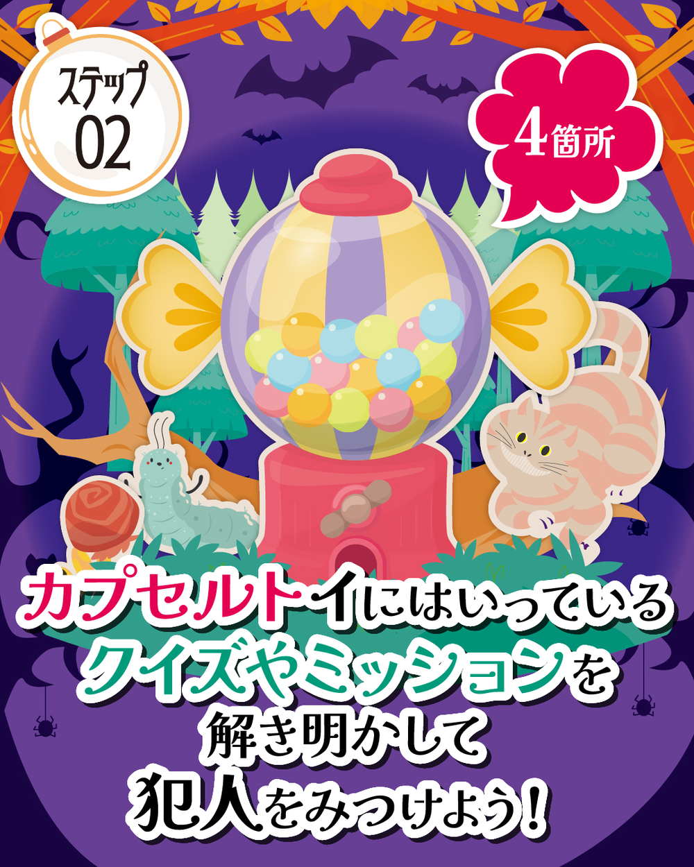 ガチャからでてくるおかしとクイズをときながら、はんにんをみつけよう!
