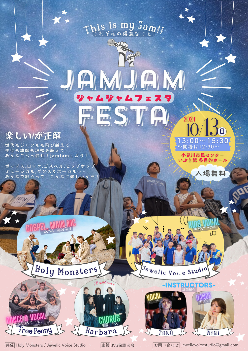 その他のお問い合わせ先:お問い合わせ窓口→ jewelicvoicestudio@gmail.com