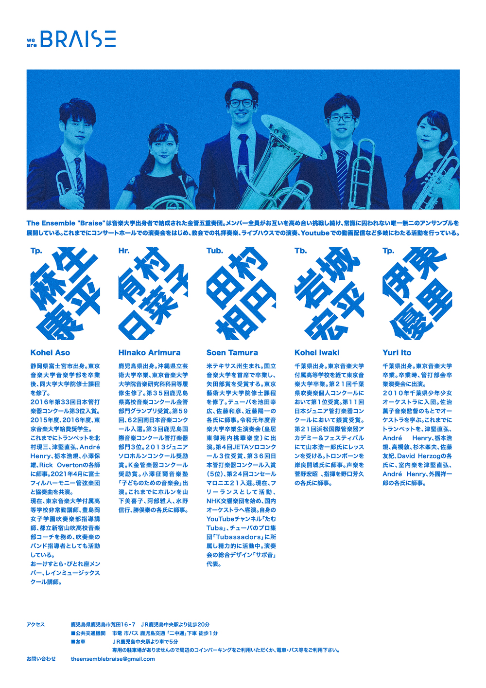 その他のお問い合わせ先:theensemblebraise@gmail.com