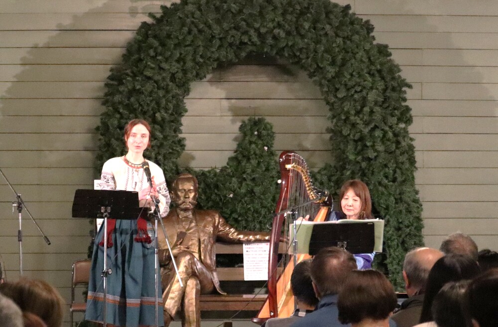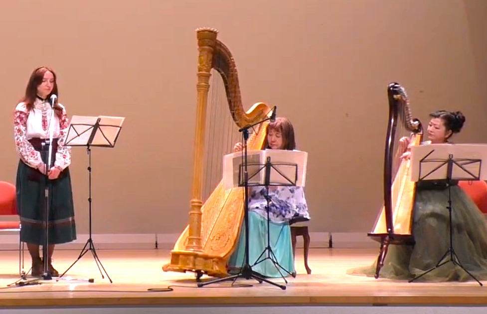 今回で6回目となるウクライナ支援チャリティーコンサートは、ウクライナの愛国歌のなかからメロディーが美しい歌を中心に、ベロニカさんが歌い、歌詞を朗読しハープが伴奏します。ウクライナ民謡のほかに、どこかで聞いた癒しのクラシックのハープアレンジ演奏や弾語り、ハープ即興とともに、ウクライナのための平和の祈りを込めた詩を日本語と英語で朗読します。売り上げからけい被を弾いた益金全額をウクライナの子どもたちのための緊急募金に寄付します。