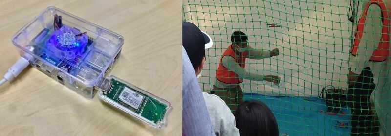 トイドローンを操縦して輪っかをくぐり、ゴールを決めよう!