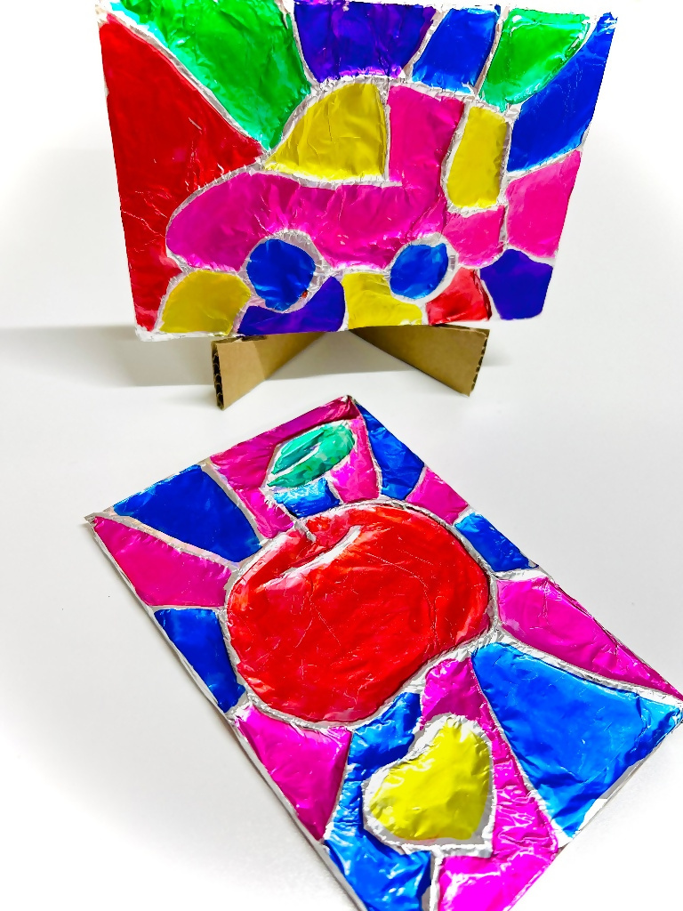 アルミホイルと紐を使い、ペンで好きな色を塗って