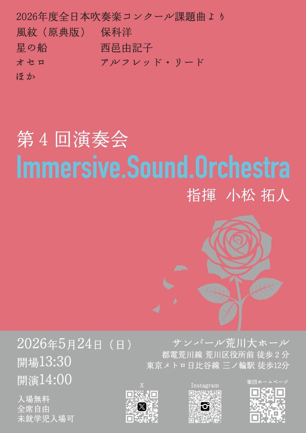 今回の演奏会では2026年度全日本吹奏楽コンクール課題曲Ⅰ・Ⅳを演奏予定。