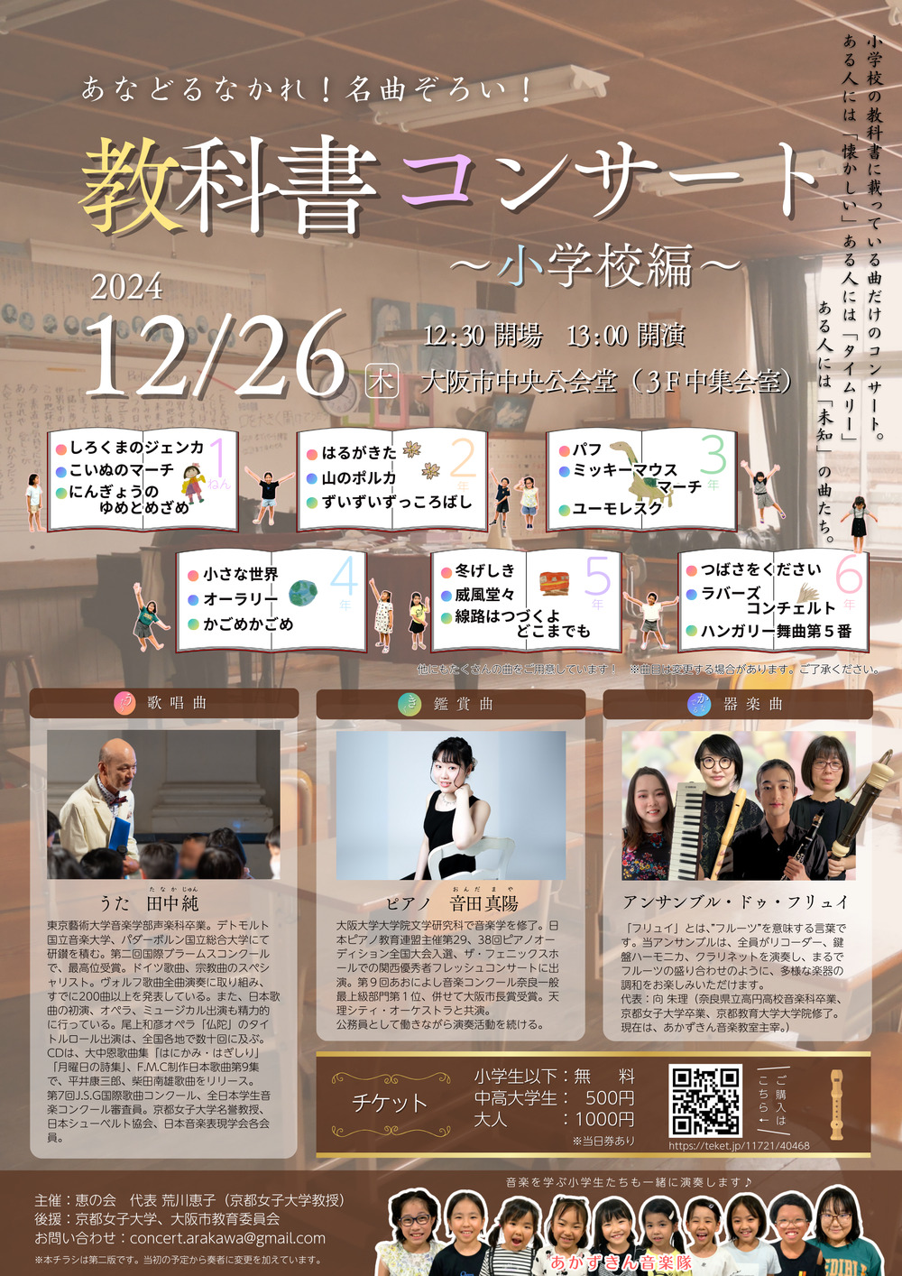 代表:向 朱理(奈良県立高円高校音楽科卒業、京都女子大学卒業、京都教育大学大学院修了。現在は、あかずきん音楽教室主宰。)