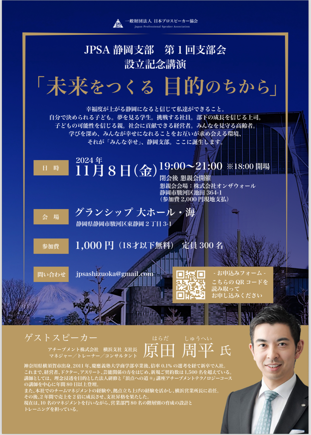 【JPSA静岡支部設立記念講演「未来をつくる 目的の力」】