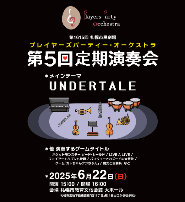 当団体「プレイヤーズパーティー・オーケストラ」は、ゲーム音楽演奏を専門とするオーケストラとして、2020年11月に北海道で活動を開始いたしました。