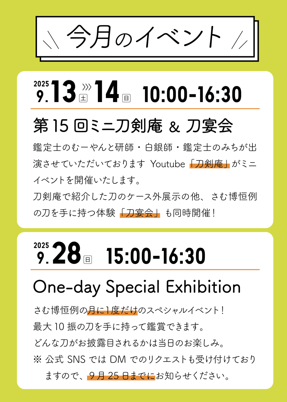 日本刀5振りを鑑賞します。