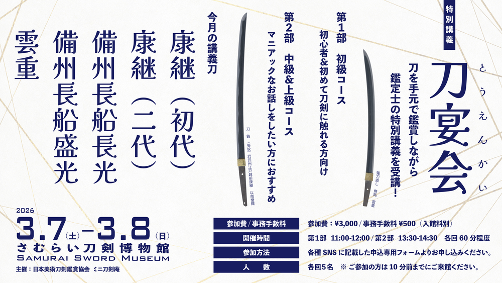 ■第1部(午前):初心者・初めて刀剣にふれる方にお勧めです。