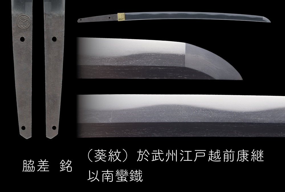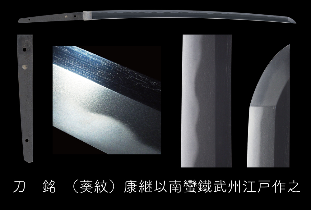 作刀の腕を認められたことから、それまでに使用していた「肥後大掾下坂」の銘から家康の「康」の一字を賜って「康継」と改銘、さらに葵の御紋を切ることが許されたと伝わります。