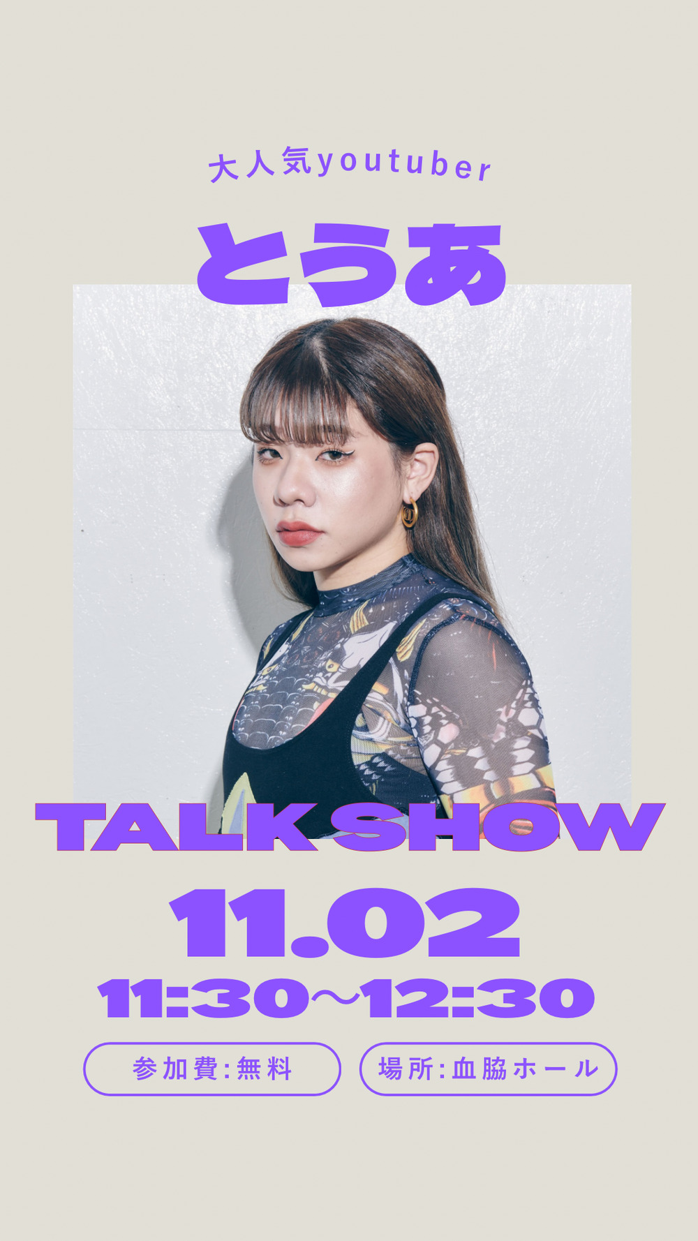 「自分らしく生きる」をテーマにしたトークショーと、事前に集めた質問に答えるQ&Aコーナーで、ここでしか聞けない特別な時間をお届けします。誰でも参加できるイベントなので、学生の方はもちろん、地域の方や初めて東歯祭に来る方も大歓迎!