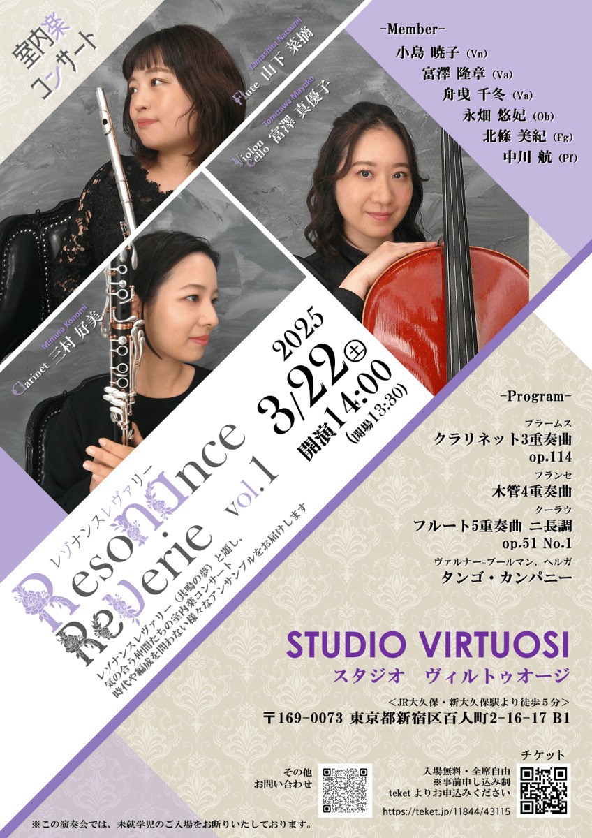 レゾナンスレヴァリー(共鳴の夢)と題し、気の合う仲間仲間たちの室内楽コンサート。
