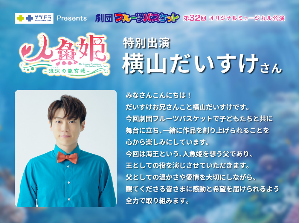 "だいすけお兄さん"が演じる「海王」が、物語にどんな感動を巻き起こすのか。ぜひ、その歌声と演技を劇場でお確かめください!