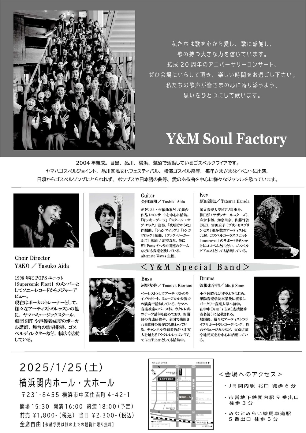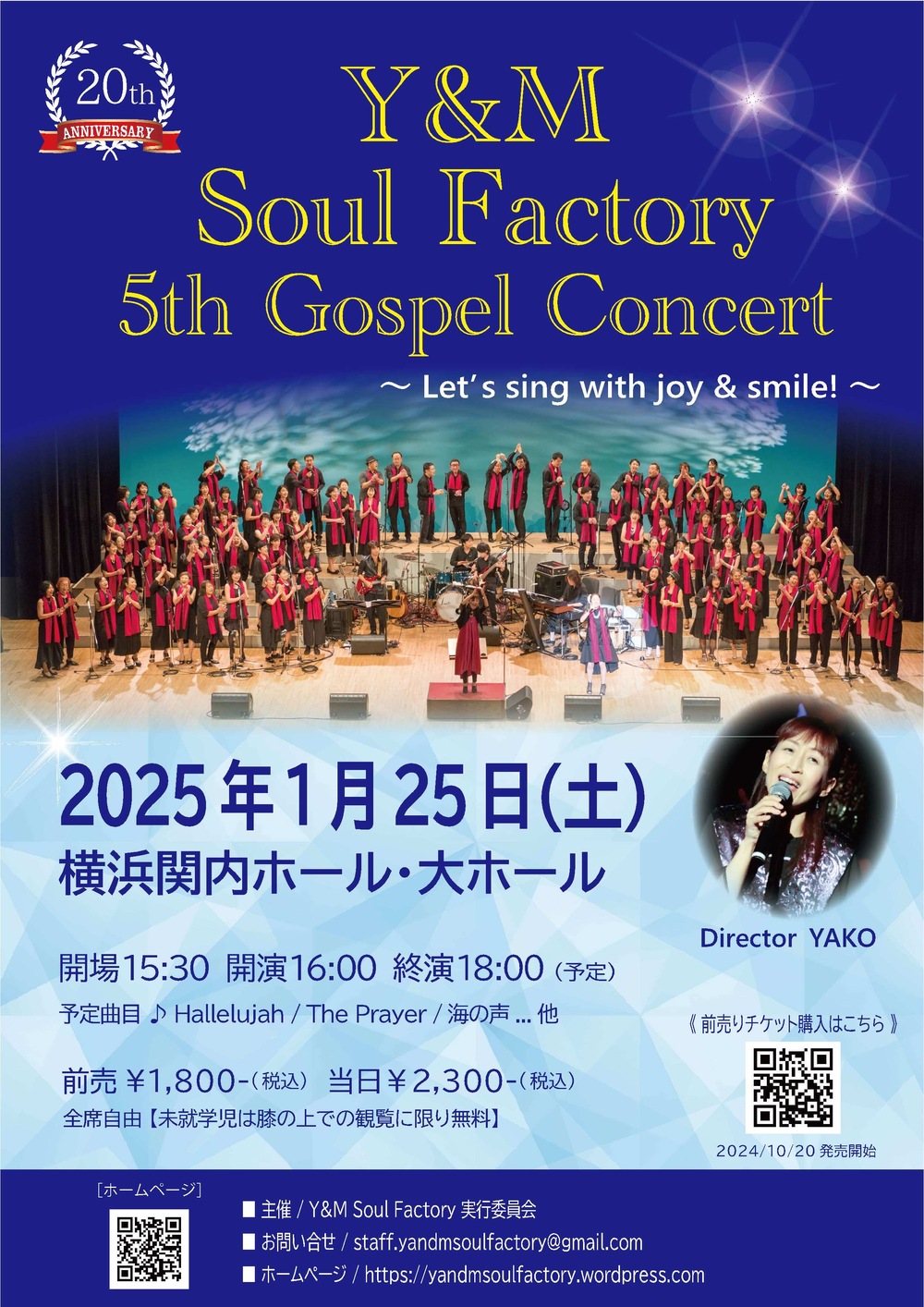 その他のお問い合わせ先:Y&M Soul Factory 5th Gospel Concert 実行委員会 チケット販売担当