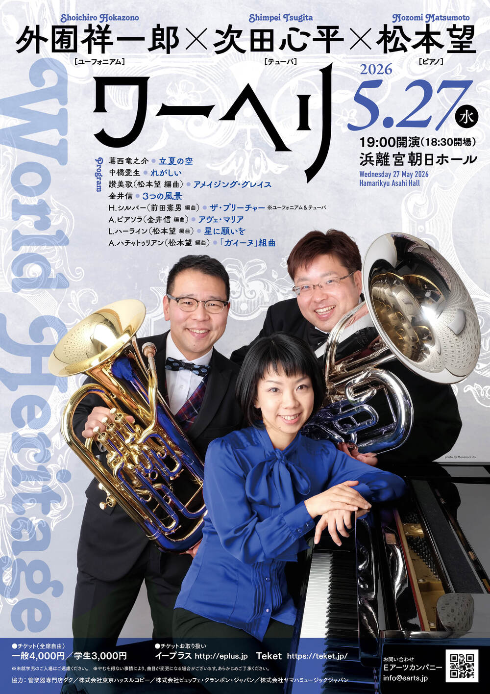 ワーヘリの名付け親の前田憲男さんは、ジャズ界の巨匠にして編曲の達人だった。今回も彼の手によるデュオが1曲演奏される。ファンキーな楽想が耳をくすぐるジャズのスタンダード・ナンバーは「福音を説く者」(ザ・プリーチャー)というタイトル。“低音金管楽器界の伝道師たれ!”という意味まで前田さんが託したかどうかは筆者も未確認だが、その鼓舞に十分すぎるほど応えた活躍を、外囿さんと次田さんは続けてきた。