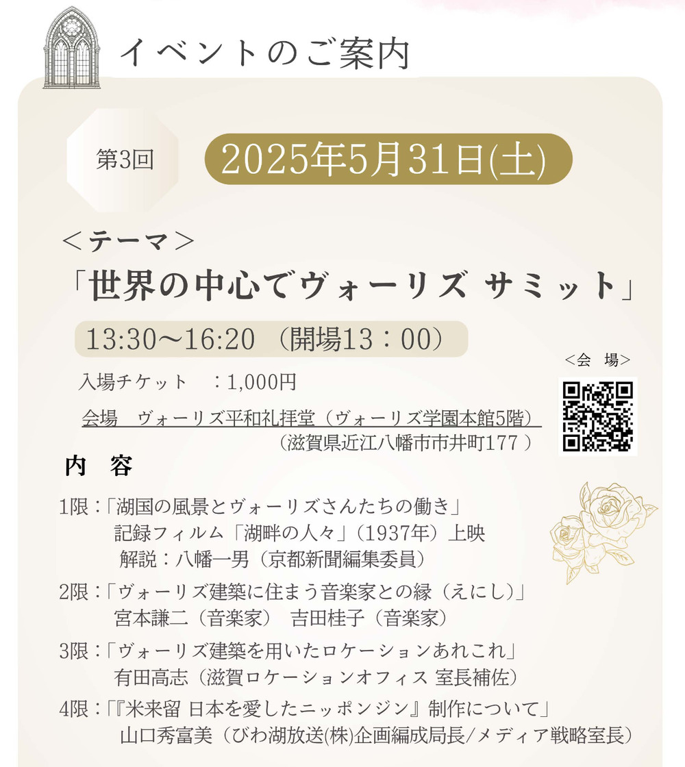 会場: ヴォーリズ平和礼拝堂 (ヴォーリズ学 園本館5F)