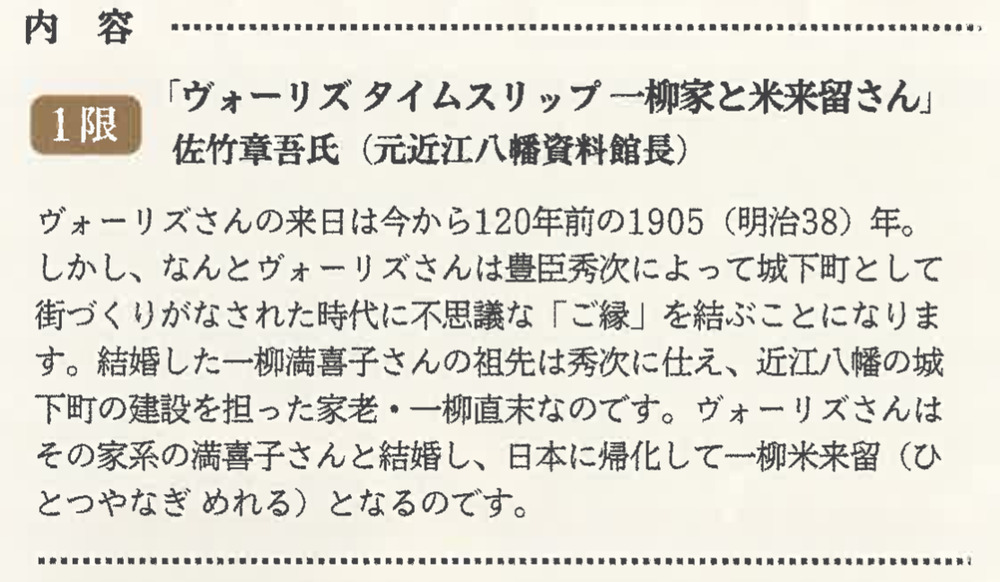 1限:「ヴォーリズタイムスリップー柳家と米来留さん」