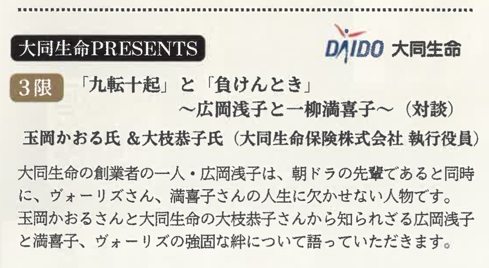 3限 :「「九転十起」と「負けんとき」〜広岡浅子と一柳満喜子〜」