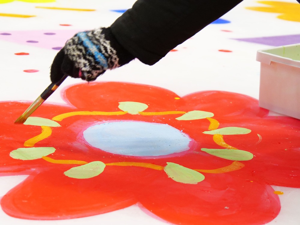 参加者のみんなと一緒に、氷の上でアートを描き広げます!