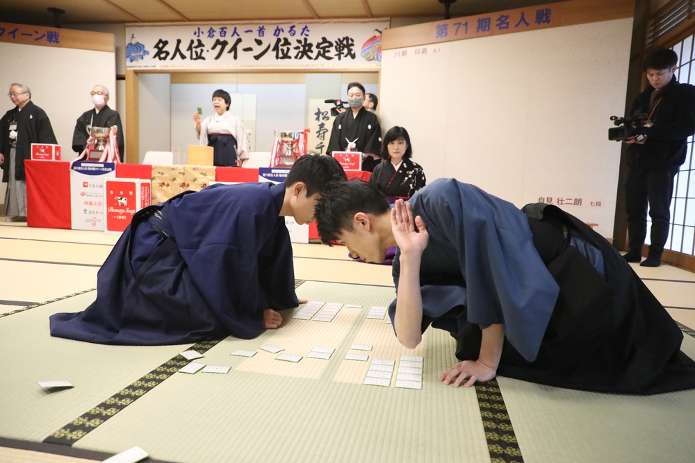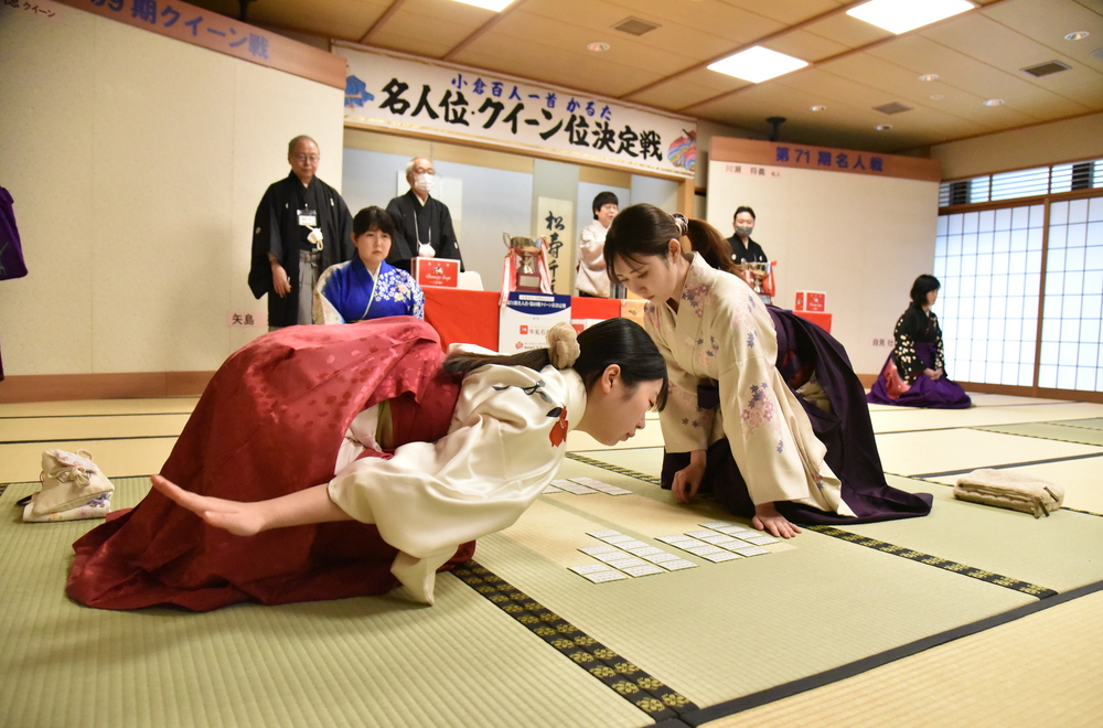 近江勧学館にて開催される小倉百人一首競技かるたの最高峰を決定するタイトル戦、「第72期名人位・第70期クイーン位決定戦」が、令和8年(2026年)1月11日(日)に行われます。白熱した競技の様子は、一般の方もご観戦いただけます。
