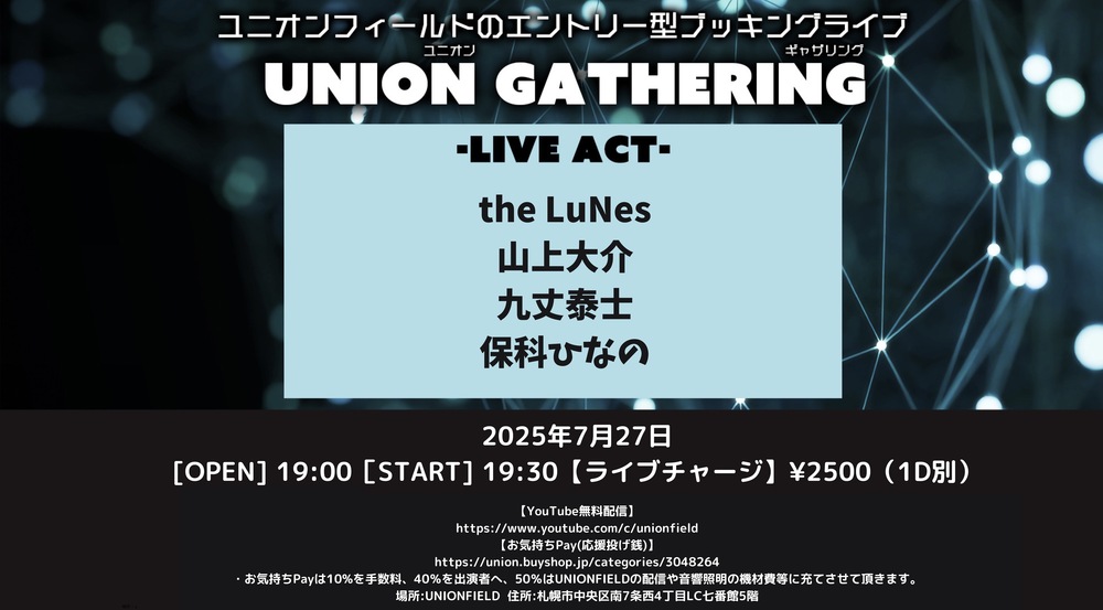 ※このライブはユニオンフィールドさんの公式YouTubeチャンネルにて当日生配信いたします!ぜひご覧ください!