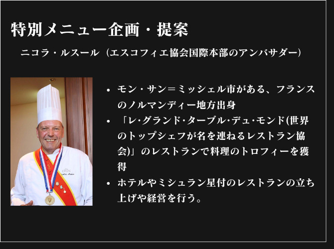 フランスの名シェフが岡山の旬の食材と岡山自慢の日本酒のペアリングを企画するフレンチのコースをお楽しみいただきます。
