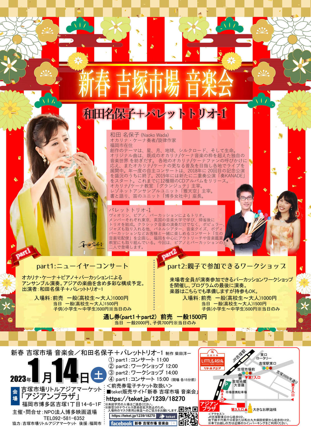 オカリナ・ケーナ+ピアノ+パーカッションによるアンサンブル演奏。アジアの楽曲を含め多彩な構成予定。